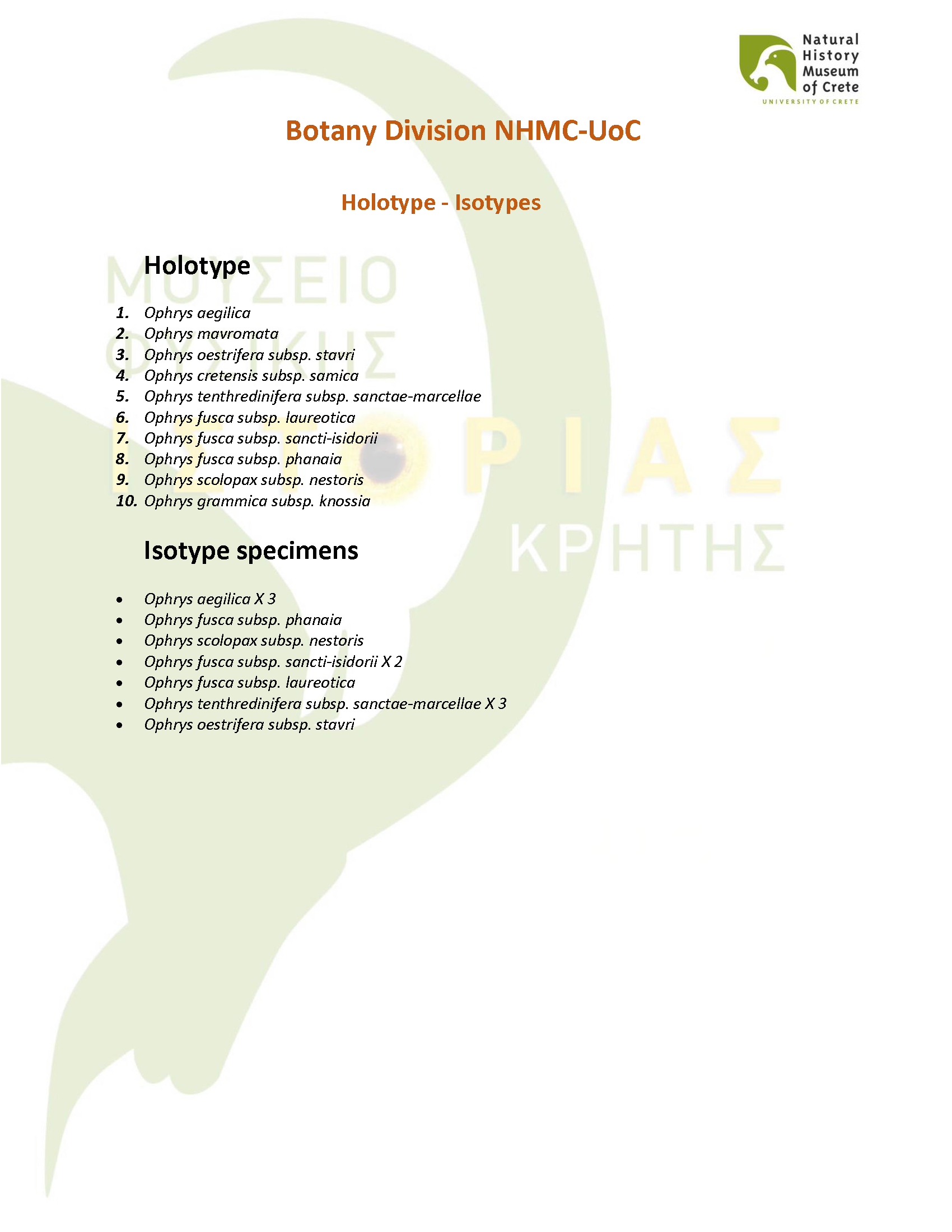 Plant collections, include dried herbarium specimens of higher plants (Pteridophytes, Gymnosperms, Angiosperms) mainly from Crete and secondarily from mainland Greece and East Mediterranean countries.